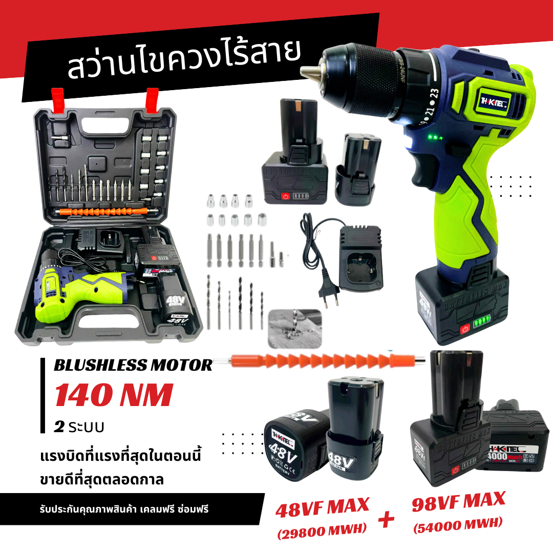 THAKITEC สว่าน 2 ระบบไร้สาย มอเตอร์บัสเลส หัวเหล็ก แรงบิด 140 NM แบตลิเธียม 48V+98V 54000 MWH ตัวอัพเกรดแบตเตอรี่ รุ่น TK18-3