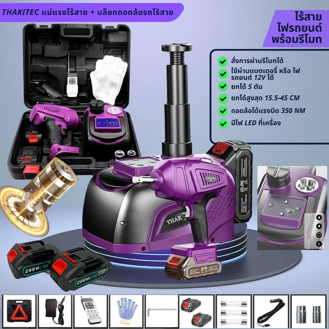 THAKITEC แม่แรงยกรถไร้สาย+บล็อกไร้สาย 3IN1 แบต 299Vf 12V 5T 45CM แม่แรงไฮโดรลิคไร้สาย ใช้ไฟจากแบตเตอรี่หรือไฟรถได้