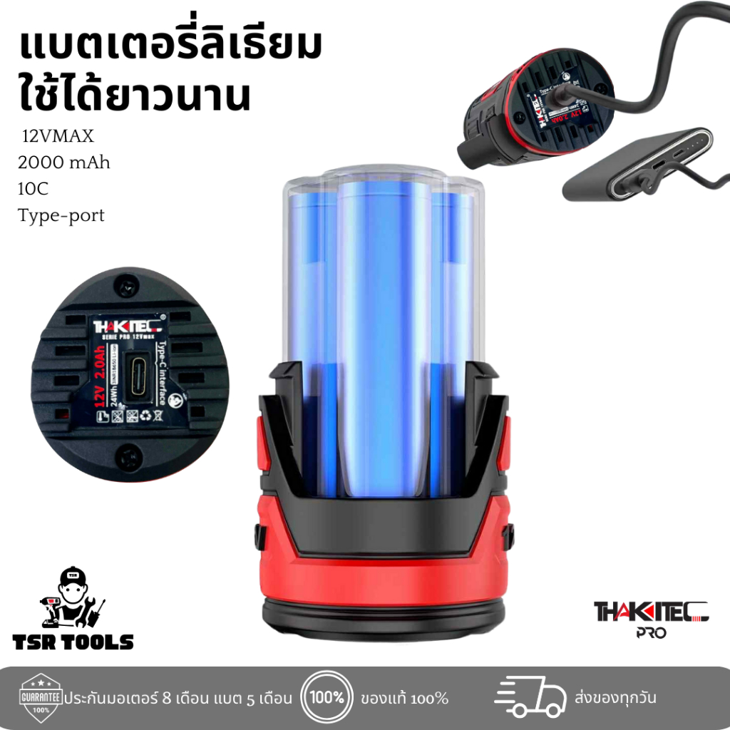 "THAKITEC มาพร้อมซีรีย์ใหม่ ซี่รีย์ THAKITEC PRO 12VMAX มาพร้อมแบตเตอรี่ลิเธียมไอออน 12VMAX ความจุเต็ม 2000 mAh และมาพร้อมกับการชาร์จแบบ TYPE-PORT หรือ TYPE-C หาง่ายและสะดวกกว่าที่เคย