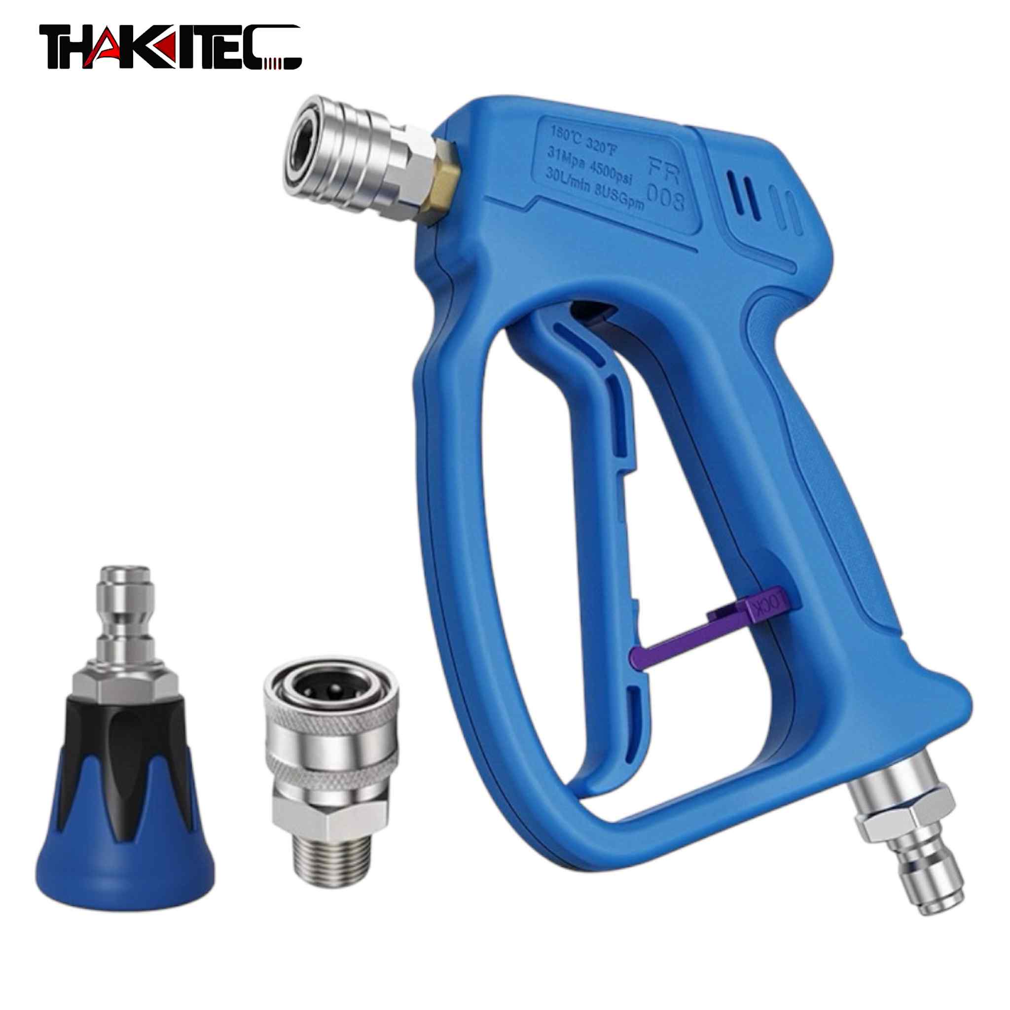 THAKITEC รุ่นงานหนัก ปืนฉีดน้ำแรงดันสูง 4500PSI ขนาด 3/8 นิ้วแบบปลดไว มาพร้อมหัวฉีด ข้อต่อสวมเร็ว พลาสติกรุ่นหนาพิเศษ