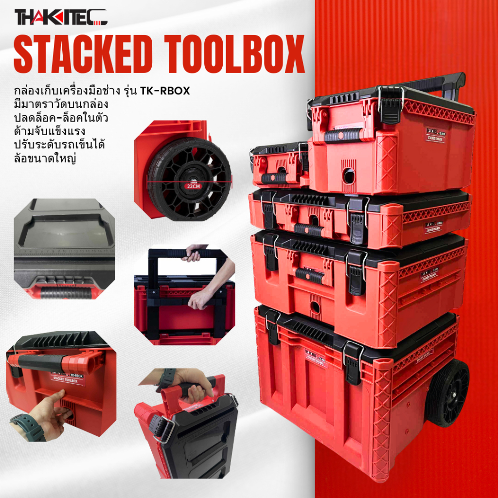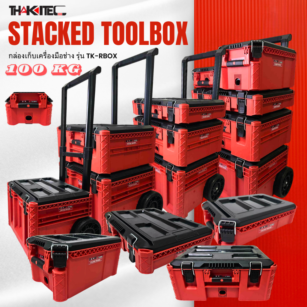 THAKITEC ชุดกล่องเก็บเครื่องมือมีล้อ แบบซ้อนทับ กล่องเครื่องมือช่าง รับน้ำหนักสูงสุด 100KG กันน้ำ