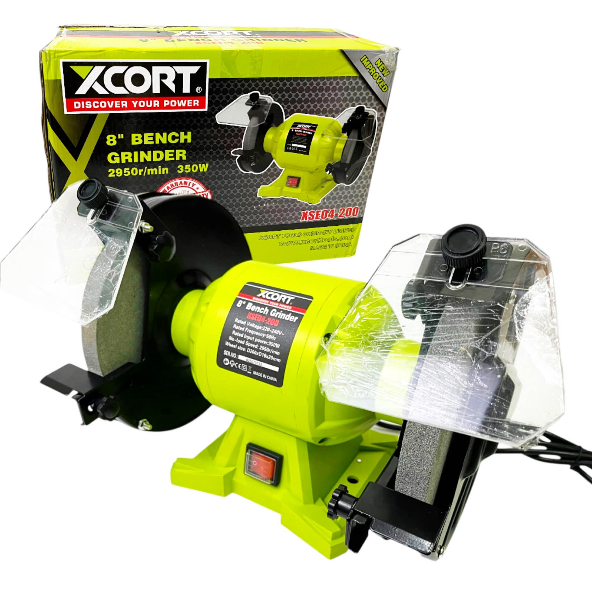 XCORT มอเตอร์หินเจียร์ไฟฟ้า 8 นิ้ว เครื่องเจียร์ แท่นหินเจียร์ไฟฟ้า กำลังไฟ 350 วัตต์ (รุ่นงานหนัก) สีเขียวดำ