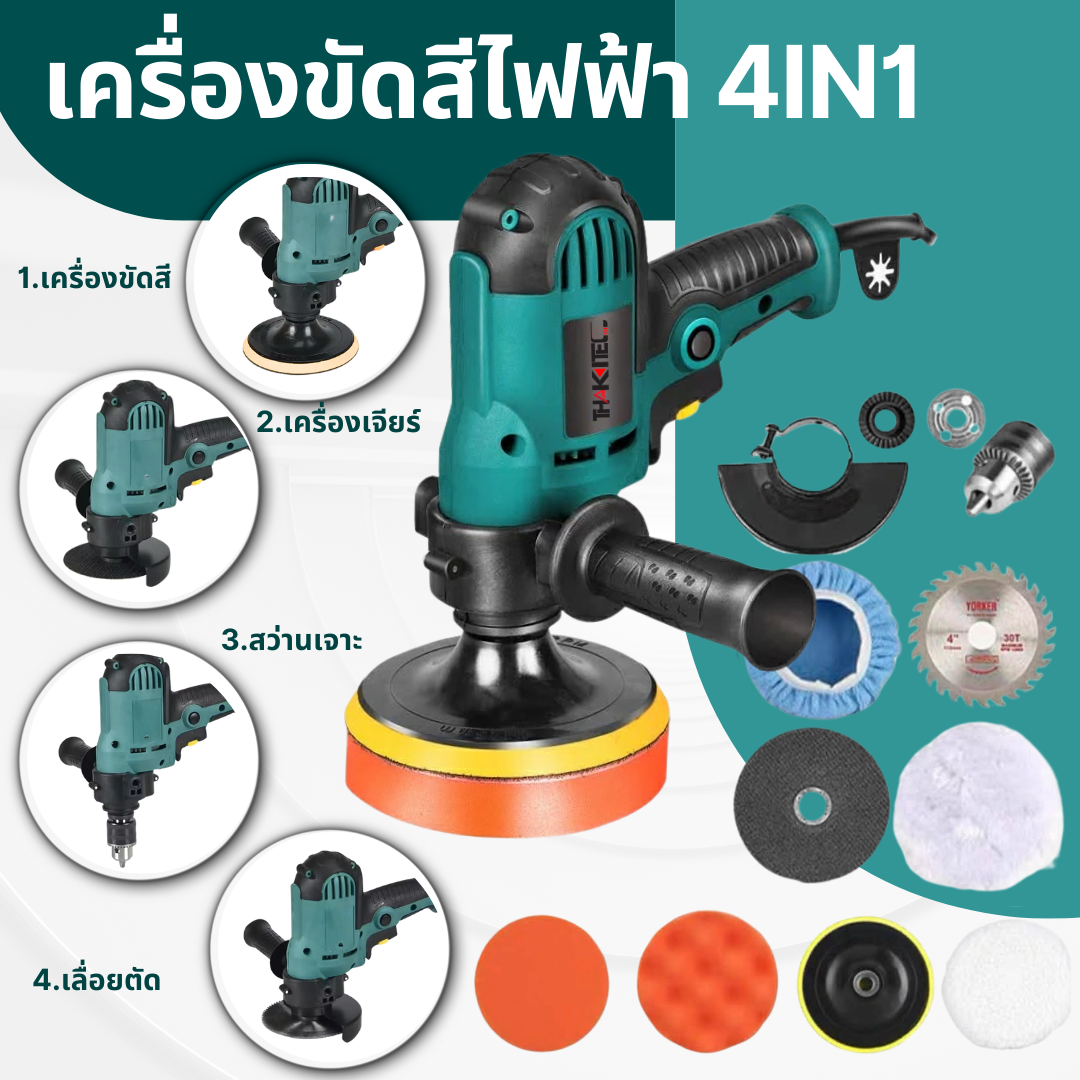 THAKITEC เครื่องขัดสีรถยนต์ขนาด 5 นิ้ว 950W+สว่าน+เครื่องเจียร์+เลื่อยตัด 4IN1 4 ฟังก์ชั่น ปรับระดับได้ พร้อมของแถม!ใบขัด ผ้าขนแกะ ฟองน้ำ ใบตัด หัวสว่าน ครบ